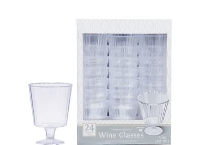 Clear Silver Trimmed Premium Plastic Wine Glasses 8ct Party City
